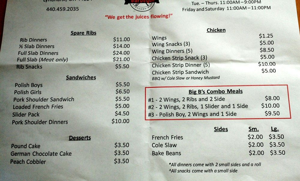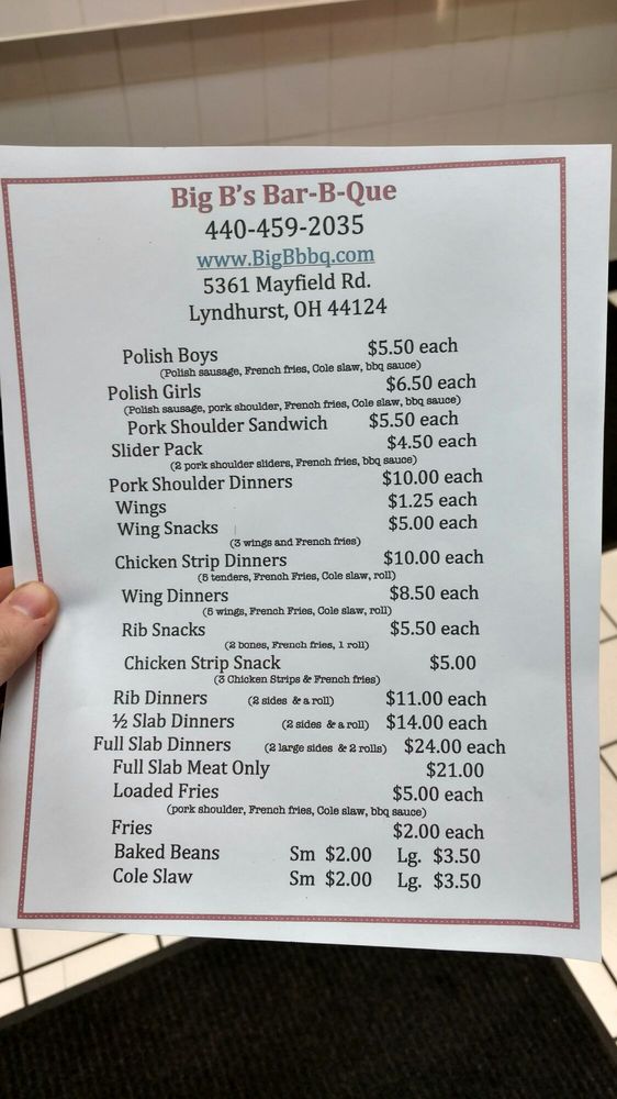 Welcome to B & M BBQ Lyndhurst Wings, Fish, Pork and Beef, a culinary gem located at 5100 Mayfield Rd, Lyndhurst, OH. Known for their **exceptionally flavorful ribs**, their menu is a meat lover's dream, featuring options like tender **spare ribs**, crispy wings, and savory **Polish boy sandwiches**. Whether you're craving **5 chicken wings** or a generous **full slab dinner**, each dish is crafted to satisfy your hunger and delight your palate.
